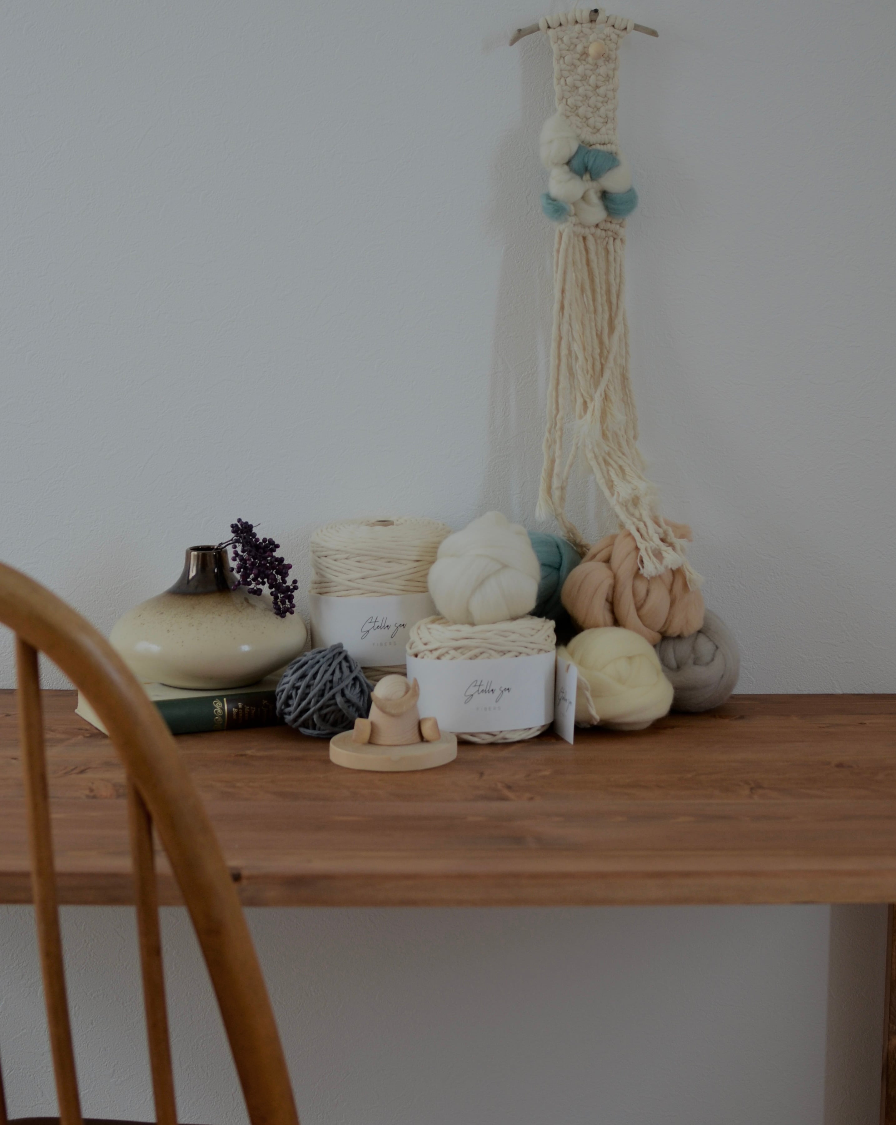 • 丈夫に。長く飾れるよう、また編むだけよりも立体感が生まれるよう編んだ後、さらに糸でひと針ひと針整えていっています
