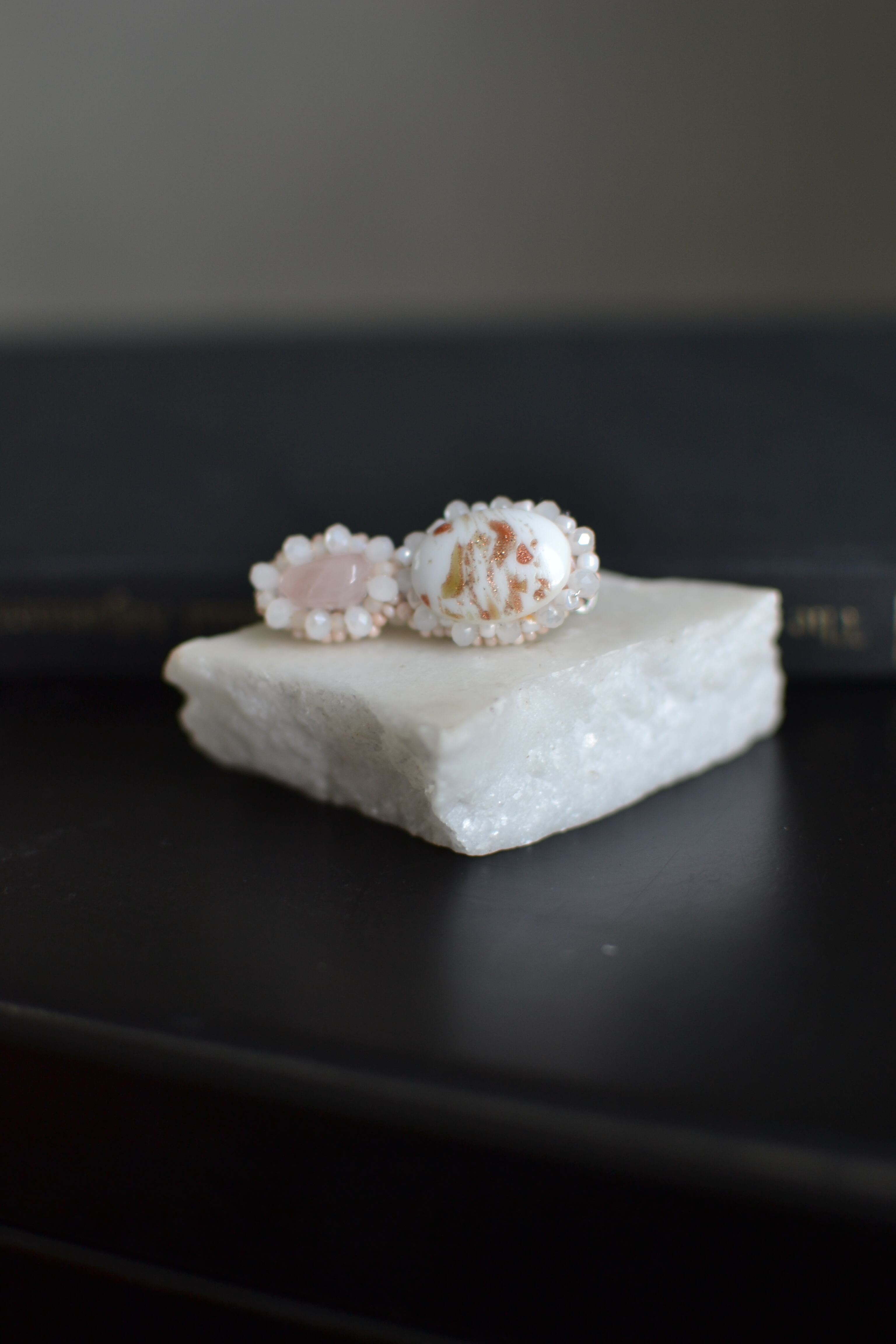 天然石をひと粒ずつ丁寧に縁取り、