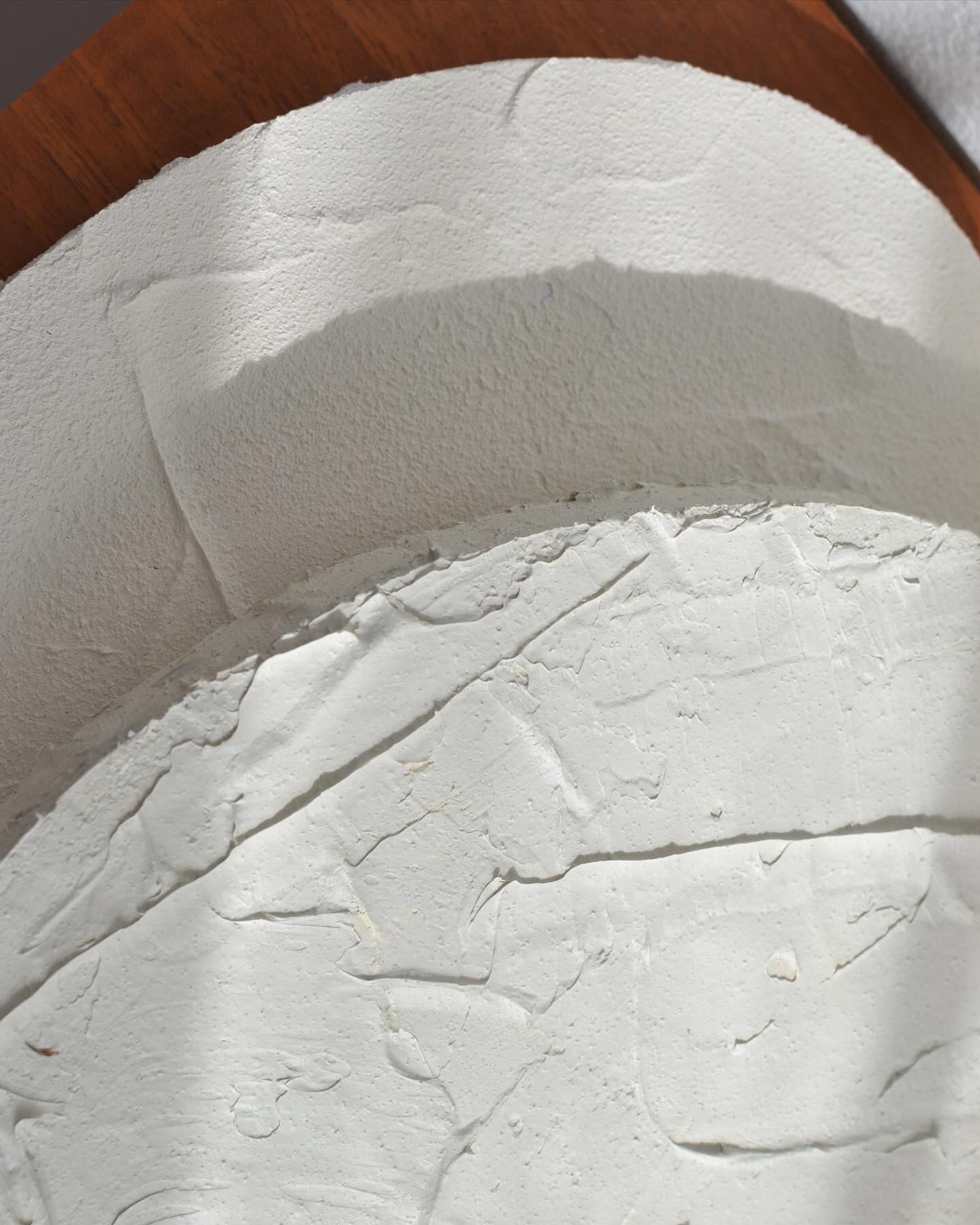 絵の具やモデリング剤のクリーミーな質感をランダムに際立たせた、独特な雰囲気と模様が個性的。